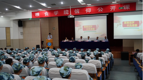 2017级优秀青年学生代表、中共预备党员刘稼鑫带来以《勇敢追梦不负青春》为主题的信仰公开课,结合自身成长经历他勉励新生们做到“四不怕”,即不要害怕尝试、不要害怕做主人、不要害怕担当、不要害怕单调和平静,倡导树立爱国爱校爱院意识,将青春之小我融入民族复兴之大我,为祖国发展和民族富强奉献青春力量。