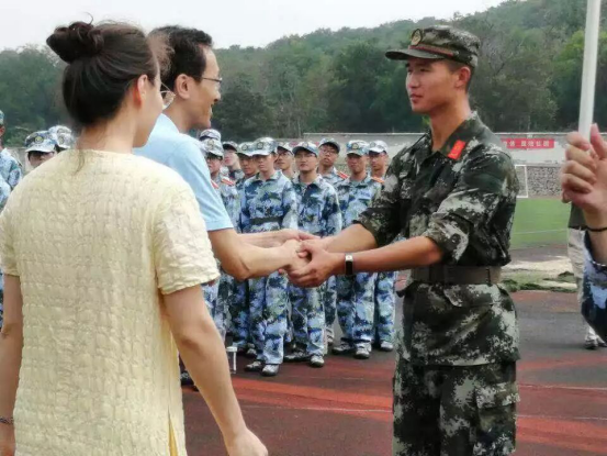 李书记对同学们的训练进行了评价,高度肯定了同学们对待军训如火般炽烈的态度,也祝愿大家一起度过这一个难忘的中秋节。李书记问道:“大家想不想家呀?”同学们回答:“想!”是啊,好多同学都是经过近半个中国远赴镇江求学,部分周边省市的同学也是第一次在学校住宿,难免会有思家的情愫。