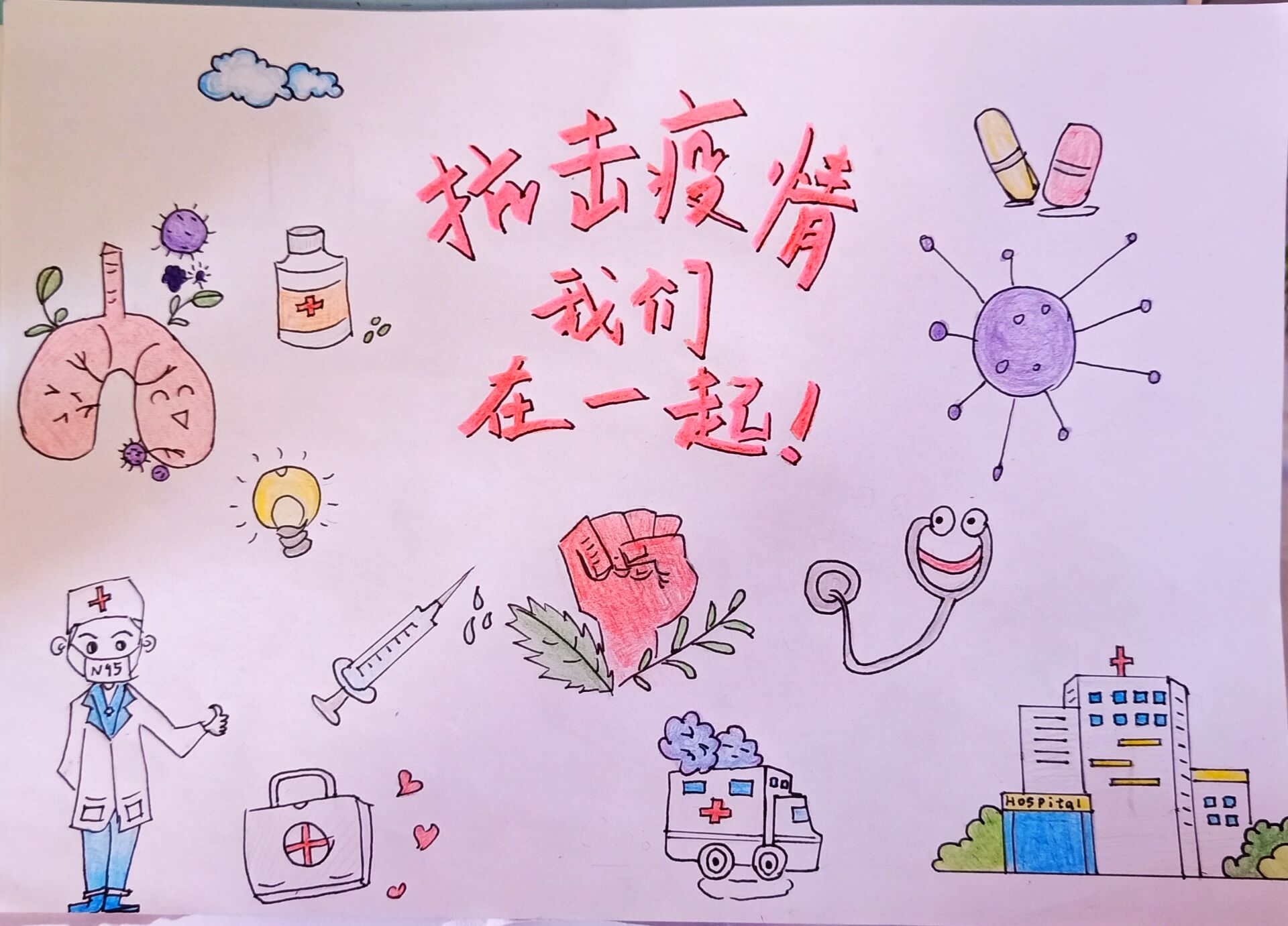 聚焦主题,温情祝福。发挥青年创造力,团支部采用青年喜闻乐见、易于接受的方式,积极参与到防控工作中来。团员以祝福视频、书法绘画作品、疫情期间生活写照、肺炎疫情知识问答等多种形式参与团课融入抗击疫情中,为抗击疫情献出自己的祝福