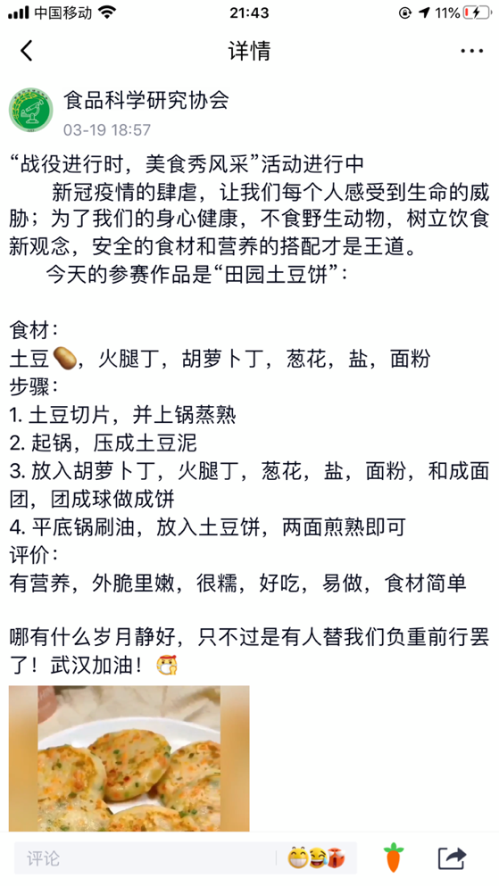 公众号美食分享评论区下,有同学感慨:哪有什么岁月静好,只不过是有人替我们负重前行。那些奋斗在前线的一线工作者们整日忙碌在病房中,无暇顾及其他,心中只有拯救生命,希望这些简单的美味也能送到他们手中。
