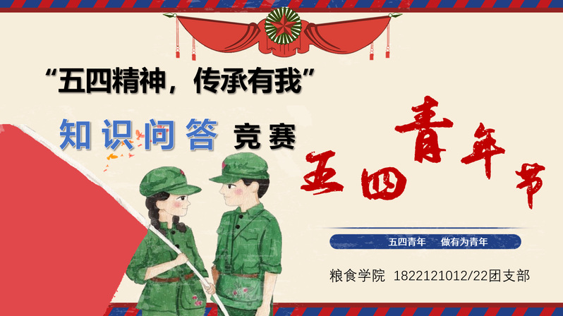 1822121012/22以及1722121022团支部开展主题线上知识问答竞赛团日活动,问答题目围绕五四运动历史和新时代新青年的五四精神传承等相关问题,包括“三会一课”、入团誓词、四项基本原则、中国共青团团歌、习近平总书记重要讲话等,同学们分为几个小组进行抢答,积极参与其中。团支书表示,作为一名共青团员,要从伟大的五四精神中摄取精神力量,增强“四个意识”、坚定“四个自信”、做到“两个维护”,深入学习习近平新时代中国特色社会主义思想。