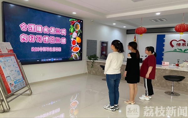 镇江市象山街道东风社区将竞彩足球app-竞彩app-足球竞彩app 制作的科普宣传动画放在大厅内滚动宣传 黎月/摄