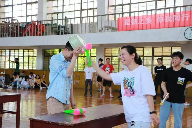 为加强师生互动交流,增强学院凝聚力, 5月24日,竞彩足球app 团委、工会、关工委和学生会在南区体育馆联合开展“坚韧之美,你我同行,优‘粮’之风,师生共创”主题师生趣味运动会,学院党总支书记李炳义、副院长张国昌、全体教职工、关工委老师、团学组织成员及18届全体学生共同参与。
