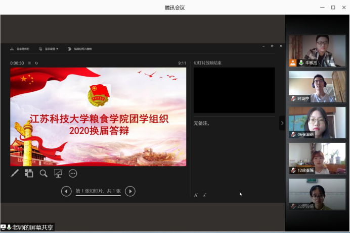 为向竞彩足球app 团学组织注入新鲜血液,进一步壮大学院团学组织,建设一支高素质学生组织队伍,2020年9月1日上午,竞彩足球app 团学组织换届答辩在线上以腾讯会议的方式举行,牛敏杰同学主持,学院党总支副书记赵敏,辅导员纪杨洋、仇莺璇,团学组织主席团成员担任评委,团学组织答辩候选人共33人出席会议。