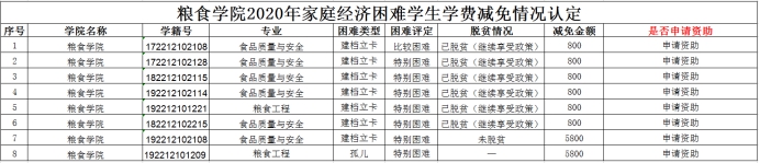 为贯彻国家家庭经济困难学生资助政策,进一步落实精准资助,帮助家庭经济困难学生顺利完成学业,学校决定开展2020-2021学年家庭经济困难学生学费减免资助工作,现将认定结果公示如下: