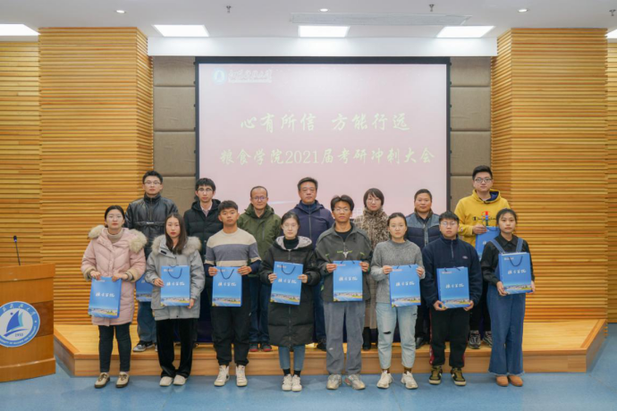 最后,出席大会老师为考研同学送上学院精心准备的考研冲刺包:一个装有手套围巾、笔袋和写字板的手提袋,预祝同学们都能落笔生花、金榜题名。