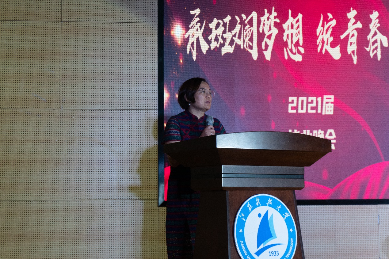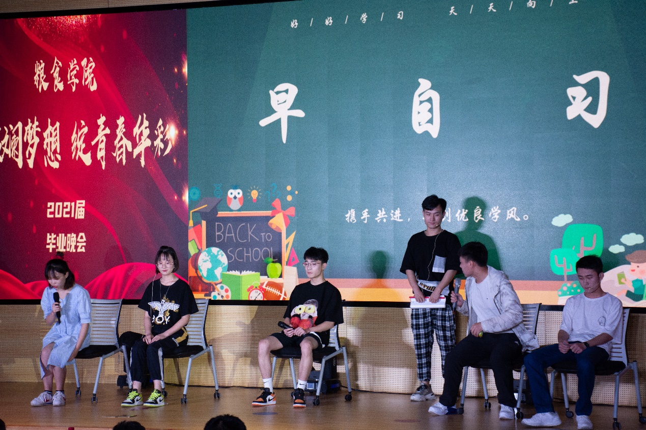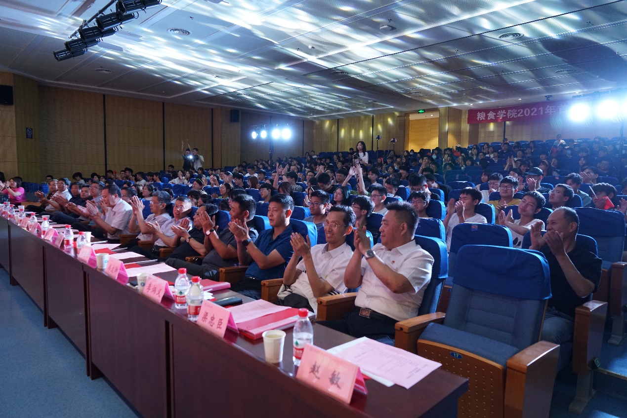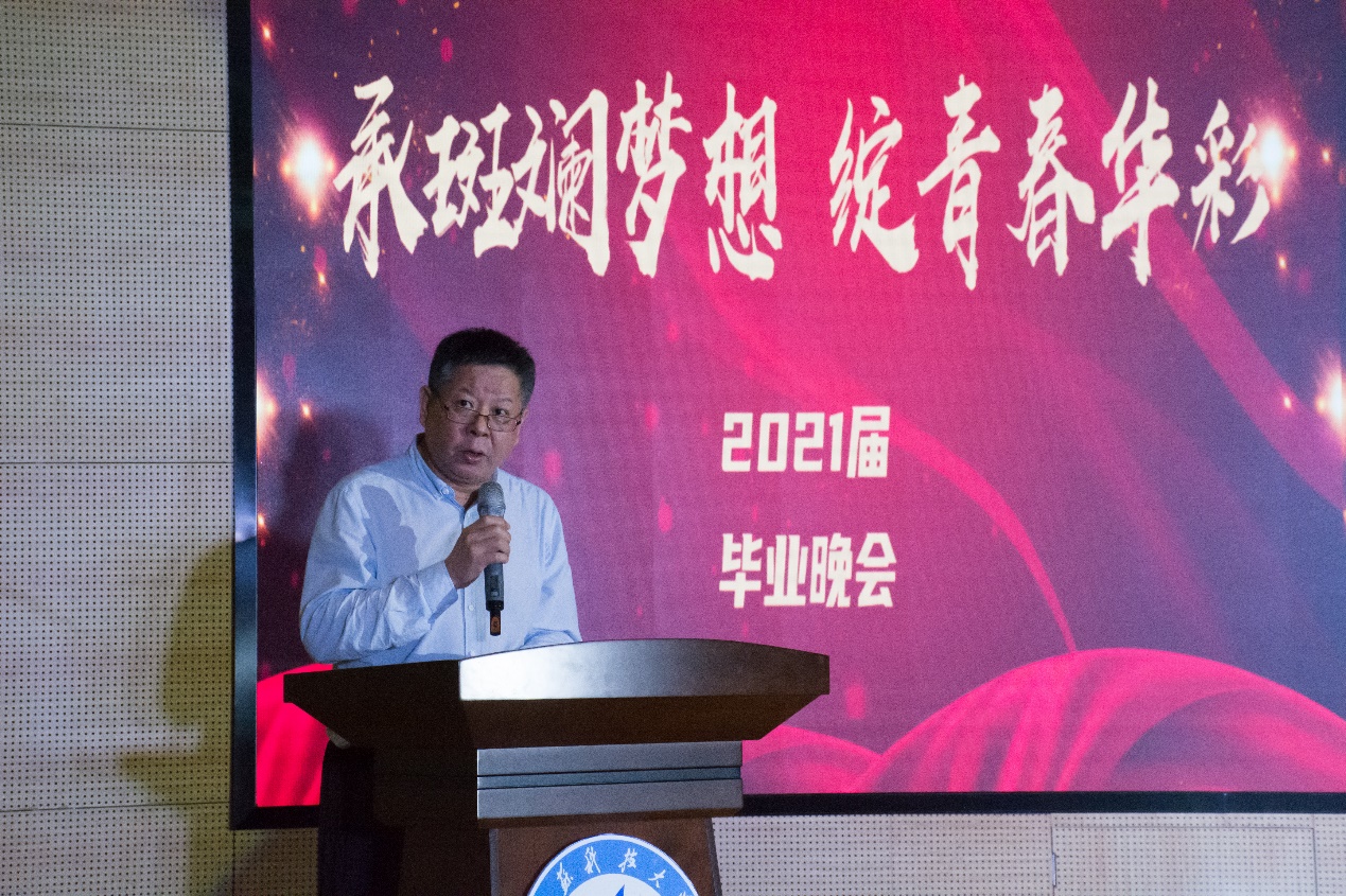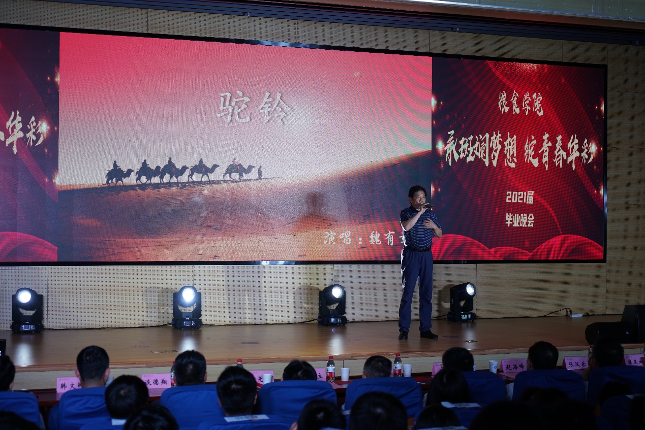 学院院长鲁玉杰在晚会上致辞,向2021届全体毕业生表示热烈的祝贺,对同学们提出了殷切的期望,期望同学们能够永远保持一颗进取之心,脚踏实地,追求卓越,时刻牢记粮食人身份,甘于奉献,勇于奋进,自觉地站在时代的前列,端牢中国饭碗,做一个“粮”心人。真诚地希望同学们在以后人生道路上做真实的自己。