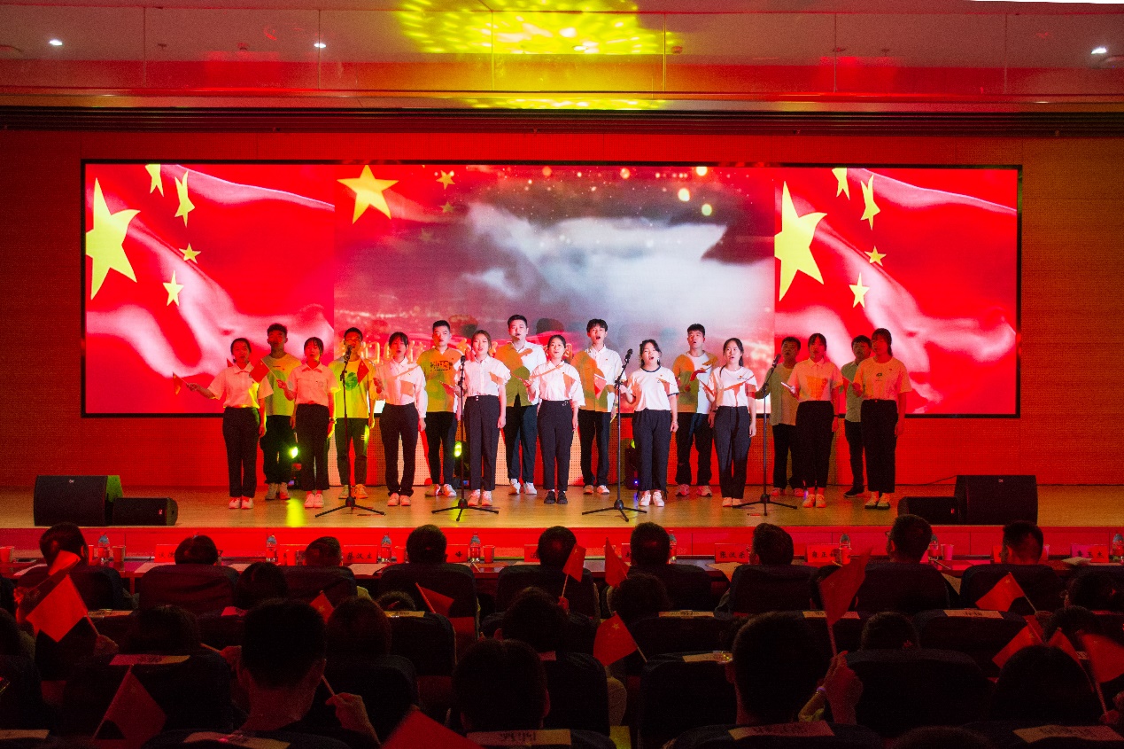 毕业生党员合唱《歌颂祖国》,唱出了对祖国的拳拳热爱。魏有章老师演唱的歌曲《驼铃》,铿锵有力,动人心魄,为毕业生深情送行和祝福。