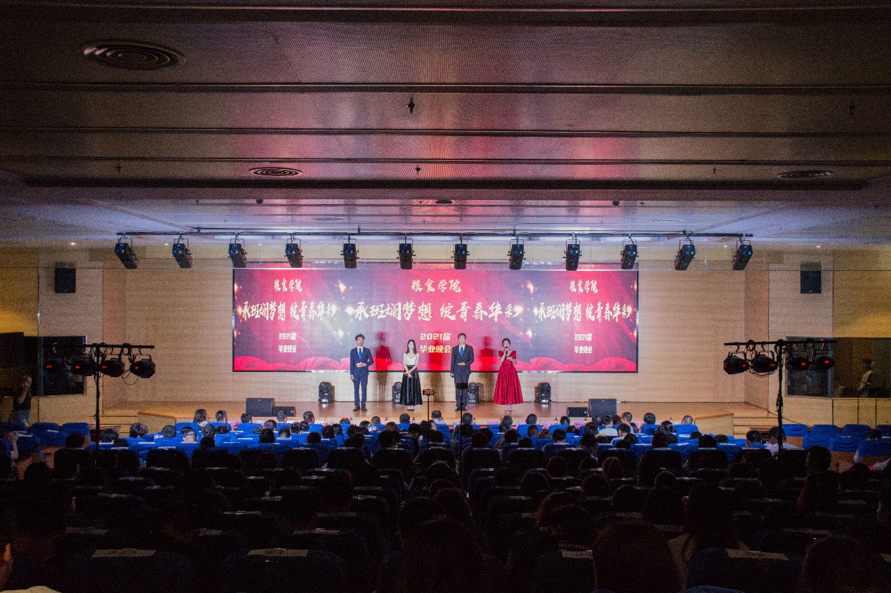 百年荣光,青春向党。6月16日晚,竞彩足球app-竞彩app-足球竞彩app “承斑斓梦想,绽青春华彩”2021届毕业晚会在图书馆105报告厅的璀璨灯光和飞扬声乐中拉开帷幕,师生们用一场精彩纷呈的文艺汇演绽放青春华彩,献礼党的百年华诞。学校党委常委、副校长汤建和校友代表与全院师生共同观看了本次晚会。