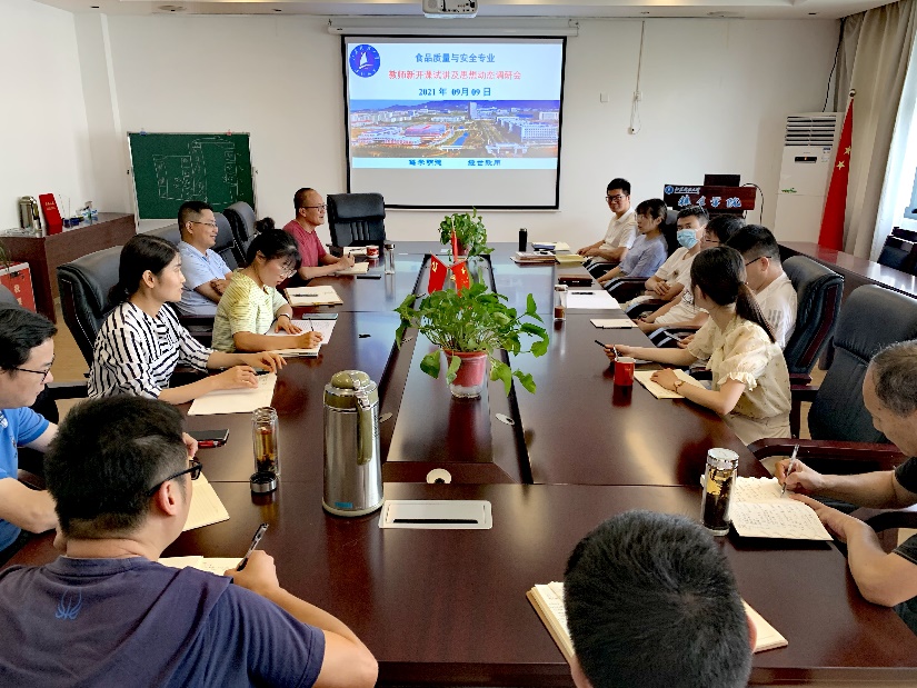 9月9日下午,食安系全体教师参加了新学期教师新开课试讲及思想动态调研会,由食安系主任郭元新老师主持。会议首先由新教师韩冬博士进行新开课试讲,随后全体教师按照2021年秋季学期教师思想动态调研要求进行了座谈。