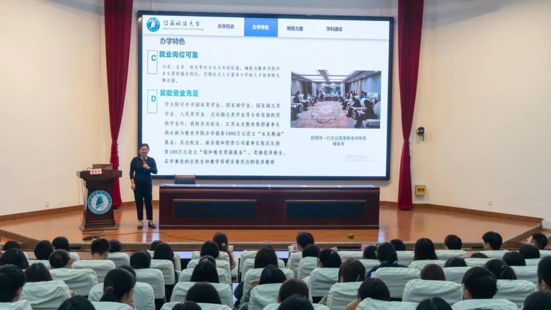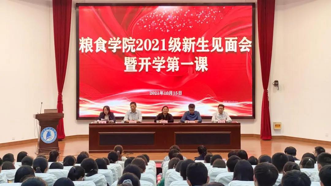 10月15日下午,粮食学院在江苏科技大学梦溪校区演讲厅举行了2021级新生见面会暨开学第一课活动。竞彩足球app 全体院领导、2021级年级辅导员、班主任与新生们欢聚一堂。