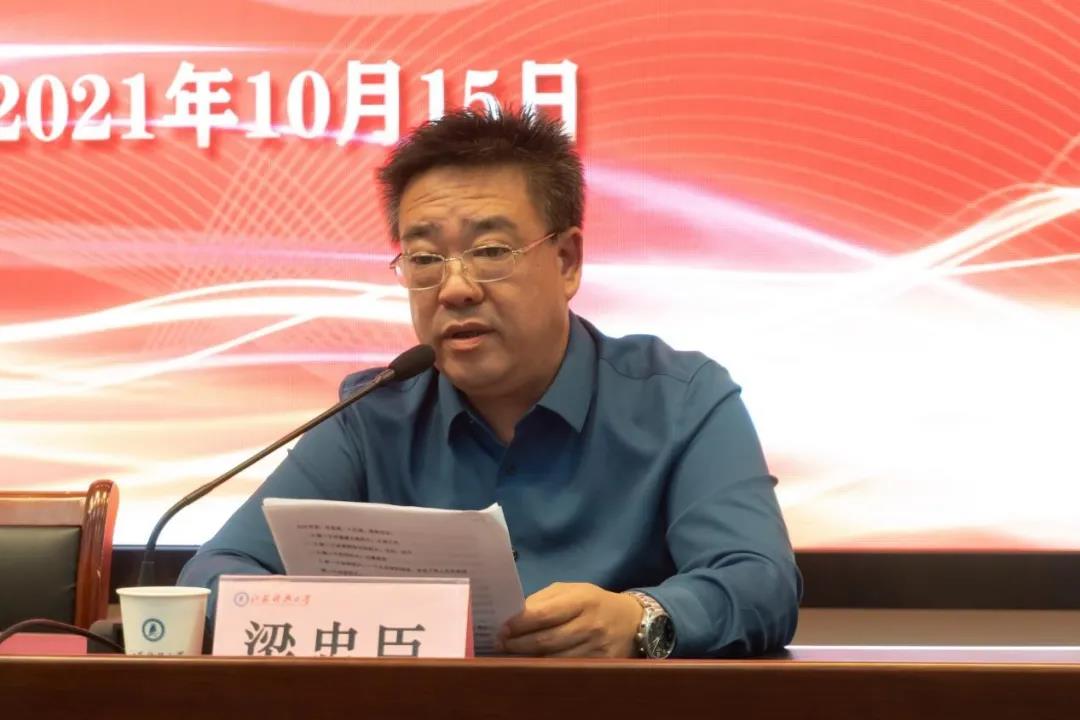 党总支书记梁忠臣首先祝贺大家步入人生经历中极为重要的新阶段——大学,他希望同学们能够明确“大学是什么”,“为什么上大学”,“来大学做什么”三个问题。随后,梁书记以一位老学工的身份寄语大家,要做一个政治立场坚定的人,做一个人格健康健全的人,做一个自信自律的人。他强调“今天再晚也是早,明天再早也是晚”,希望同学们珍惜在梦溪校区的学习时光,严格遵守学校疫情防控要求,在竞彩足球app 这块沃土上储备知识,积蓄智慧,用辛勤和汗水谱写新的华章,并祝愿同学们在大学生活中,努力进取,勤于学习,乘势而上,再创辉煌。
