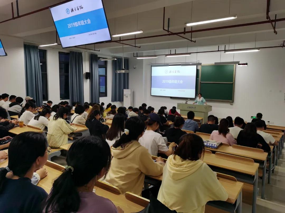 在2019级年级大会上,武兆文老师提醒大家在疫情防控期间不可掉以轻心,严格遵守学校规定,做到非必要不出校,出校做好个人防护,及时报备。就19级学风建设问题,勉励大家在大学关键期不盲目乐观,也绝不自我否定,在专业学习上稳扎稳打,做好时间管理,养成严格自律的良好习惯,提高学习效率,以积极的态度解决问题,收获成长。