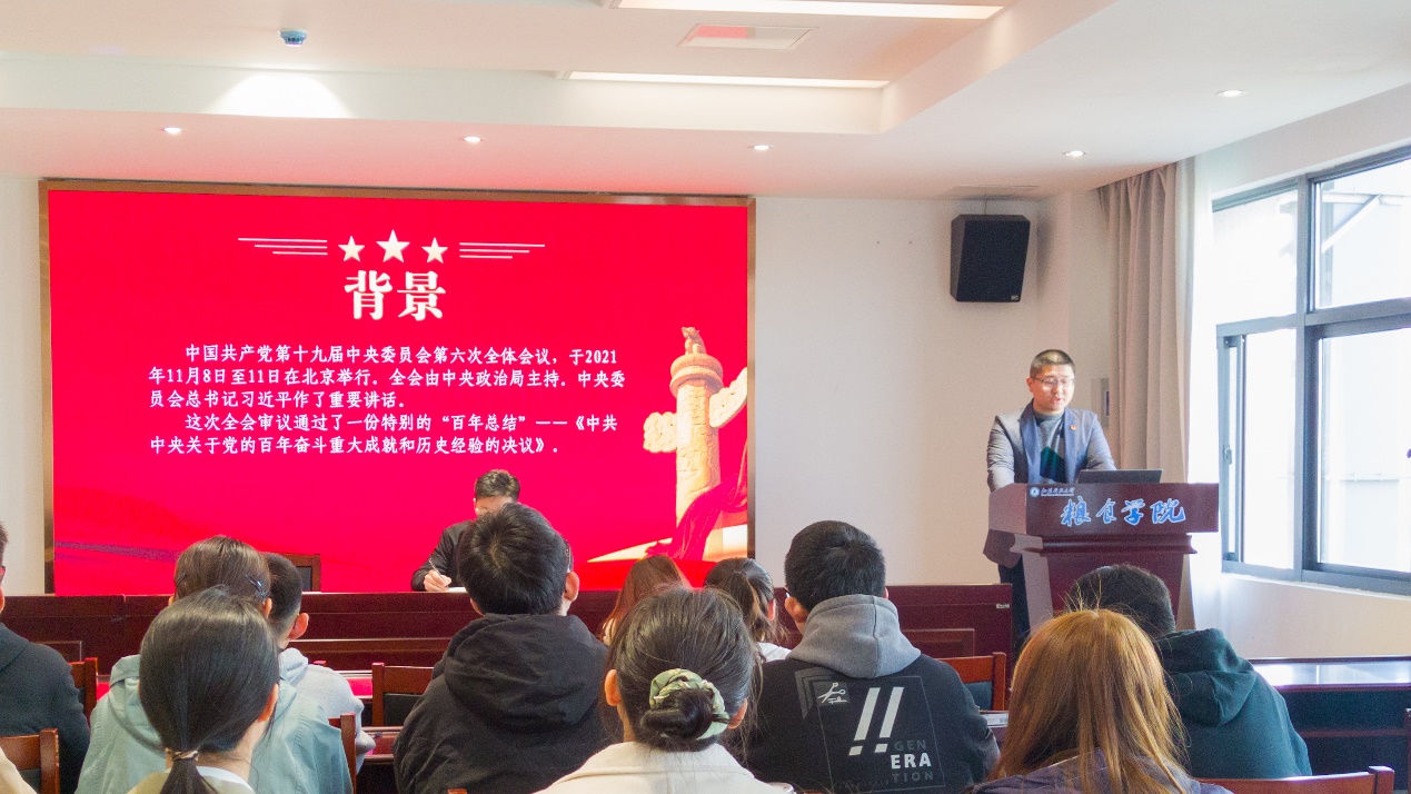 纪杨洋老师表示,党的十九届六中全会是在我们党百年华诞的重要时刻和“两个一百年”奋斗目标历史交汇关键节点上召开的一次十分重要的会议,对推动全党统一思想、统一意志、统一行动,团结带领全国各族人民夺取新时代中国特色社会主义新的伟大胜利,具有重大现实意义和深远历史意义。全会通过的《中共中央关于党的百年奋斗重大成就和历史经验的决议》,全面总结了党的百年奋斗重大成就和历史经验,是一篇光辉的马克思主义纲领性文献,是新时代中国共产党人牢记初心使命、坚持和发展中国特色社会主义的政治宣言,是以史为鉴、开创未来,实现中华民族伟大复兴的行动指南。
