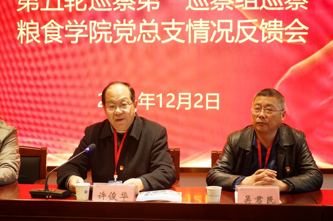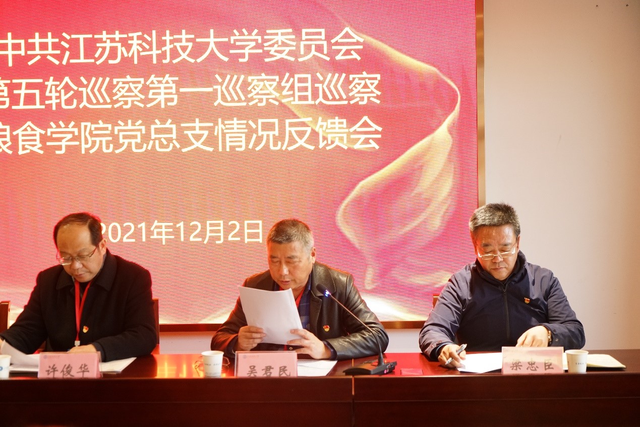 12月2日下午,中共江苏科技大学委员会第五轮巡察第一巡察组巡察竞彩足球app 党总支情况反馈会议在竞彩足球app 440会议室举行。校党委副书记、巡察组组长许俊华,巡察组副组长吴君民以及巡察组专员蒋宏志处长等第一巡察组成员,竞彩足球app 领导班子成员及全体教职工参加反馈会。会议由竞彩足球app 党总支书记梁忠臣主持。