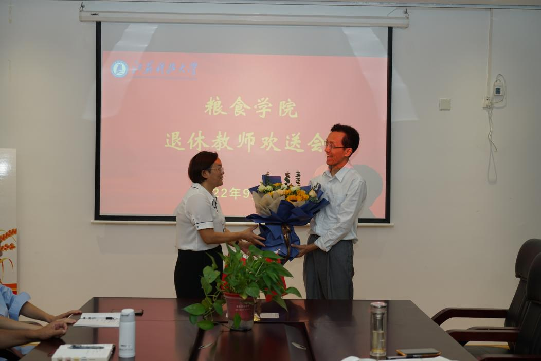9月15日下午,粮食学院在436会议室召开退休教师欢送会。学院领导、各系部及工会负责人、教师代表等欢聚一堂,欢送李炳义老师光荣退休。