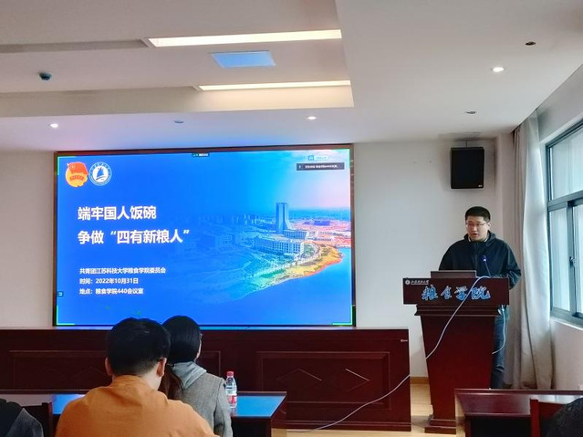 10月31日下午,全国行业职业教育教学指导委员会委员、江苏工匠、张家港市粮食产业发展有限公司董事长方治先生为竞彩足球app 青年大学生作了以“端牢国人饭碗,争做‘四有新粮人’”为主题的报告。报告会由竞彩足球app 党总支书记梁忠臣老师主持,竞彩足球app 团委副书记纪杨洋老师、2021级年级辅导员赵亚冉老师以及各年级学生参加本次报告会。