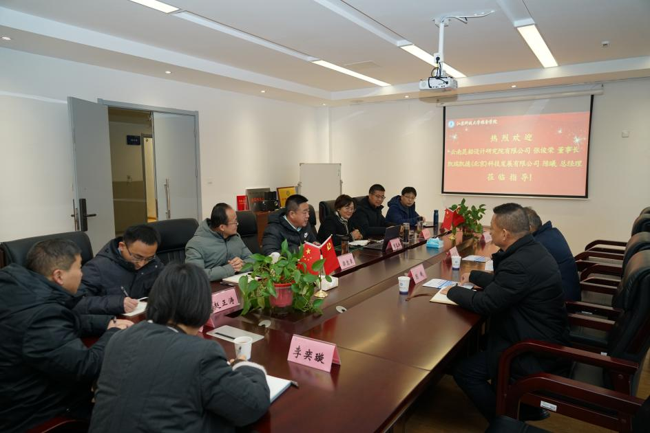 2月23日上午,云南昆船设计研究院有限公司董事长张俊荣、凯瑞凯德(北京)科技发展有限公司总经理陈曦一行来足球竞彩app 洽谈校企合作事宜。竞彩足球app 党总支书记梁忠臣、院长鲁玉杰、副院长张晓伟以及系主任、部分教授等参加了座谈。