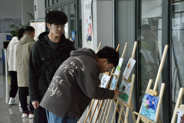 3月31日,“为星星点灯,照亮星星的路”主题绘画作品展在江苏科技大学图书馆一楼大厅举办。此次画展的作品来自镇江市京口区特殊教育中心的儿童,共计30余幅。吸引了诸多同学驻足参观并为孤独症儿童留下祝福暖心话语。