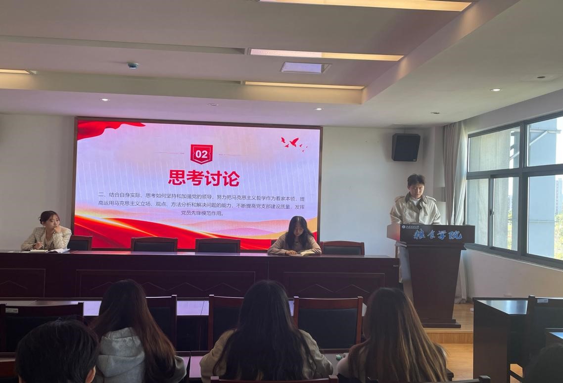 会后,武兆文老师对本次党支部会议进行总结发言,她首先对此次政治学习整体进行总结,强调各位党员同志要深入学习习近平总书记关于党的建设的重要思想以及2023年全国组织工作会议内容,同时党员同志应结合自身实际,深入学习《习近平新时代中国特色社会主义思想学习纲要》,不断提高党性修养与思想觉悟。其次,仇莺璇老师指出党支部存在的现有问题,并提出一系列改进与解决措施,同时她希望各位党员同志可以将会上所学运用到实践中,不断提高运用马克思主义立场、观点、方法分析和解决问题的能力,努力提高党支部建设质量与党员自身修养。