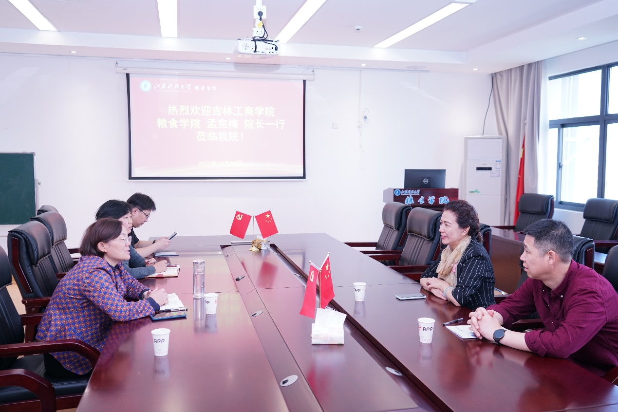 10月30日,吉林工商学院竞彩足球app 院长孟宪梅、副院长孙肖明一行来足球竞彩app 调研交流。院长鲁玉杰及相关专业负责人参加座谈交流。