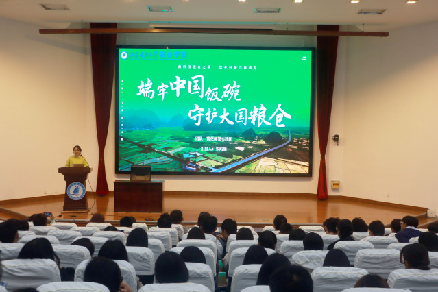 2021级朱玙颉同学是乡村振兴“笃行计划”全国示范团队队长。她详细地介绍了整个团队在实践过程中所做的工作,成员们通过走进镇江句容市天王戴庄智慧农场,体验“行走的大自然课堂”,领悟农耕文化;走进中储粮镇江粮油有限公司,真正体会“守住管好天下粮仓”的粮食人初心,充分感受农业农村现代化。她提到,参加社会实践活动不仅能够开扩眼界、增加人生阅历,还能在实践中实现自己的人生价值。