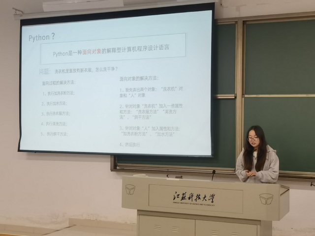 李婧同学分享了计算机二级C语言的学习经验,并结合VB语言解释了C语言的难易程度,她推荐同学们采用听网课和练习题相结合的方式学习。马悦同学讲解了Python程序设计语言的内容,说明了Python应用范围广、简单易学,鼓励同学们在有VB语言的基础上积极报考计算机二级Python。王荣轩同学从准备工作、刷题方法、抓重点三个方面介绍了如何学习计算机二级MS Office。