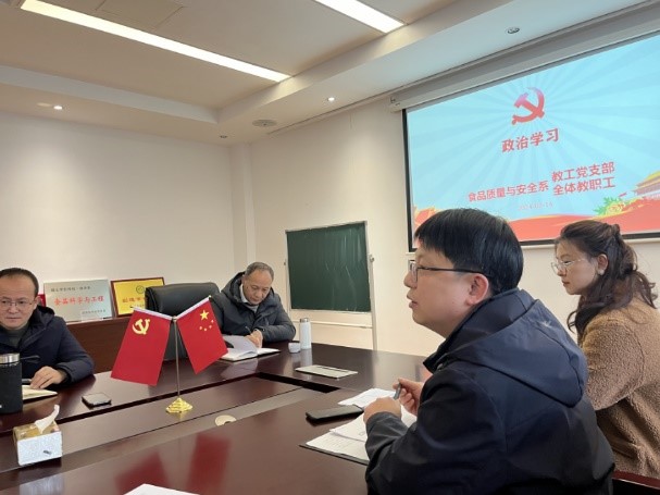 3月14日下午,食品质量与安全系教工党支部开展2024上半年第一次党支部集中学习活动,党员同志围绕最新的全国两会精神、习近平总书记在十四届全国人大二次会议江苏代表团审议时讲话精神进行集中学习。