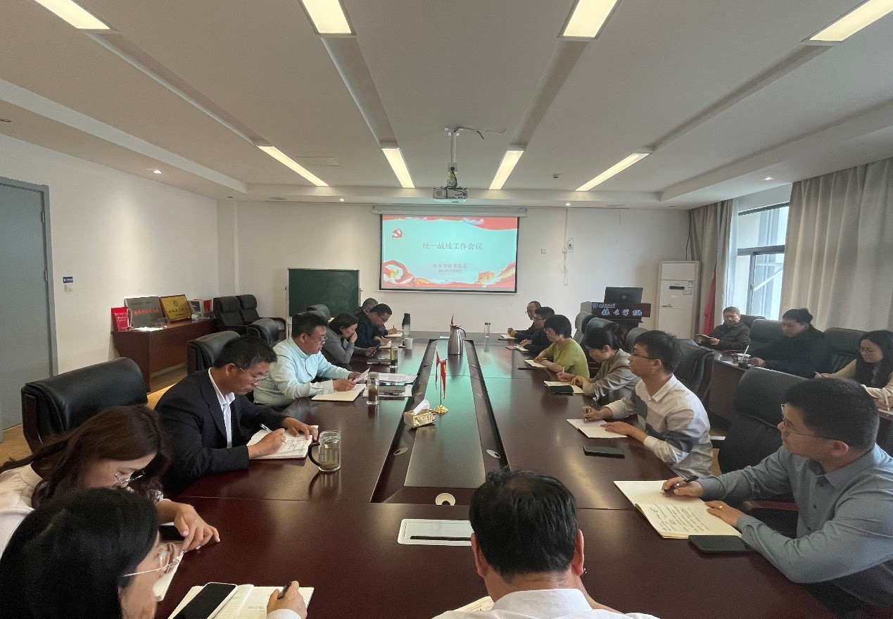 梁忠臣向到会人员通报了学院统战工作的现状,领学了“习近平总书记关于爱国统一战线的重要论述”,解读了《中国共产党统一战线工作条例》。