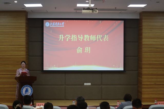 优秀教师代表俞玥老师寄语同学们“选择与努力并重,理性定位,砥砺奋斗”,希望同学们把登高望远同脚踏实地结合起来,在登高望远中审视全局、把牢方向,在脚踏实地中攒足底气、稳步前行。
