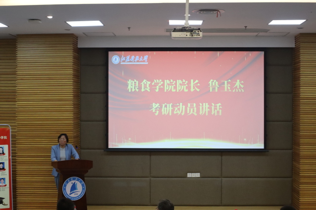 鲁玉杰院长介绍了学院近年来的人才培养情况,她首先对2024届升学情况做了总结分析,随后对2025届学生的考研复习提出了“理性择校:定位理想与现实”“踏实复习:注重基础与提升”“调整心态:保持积极与乐观”“劳逸结合:追求健康与效率”四条建议。