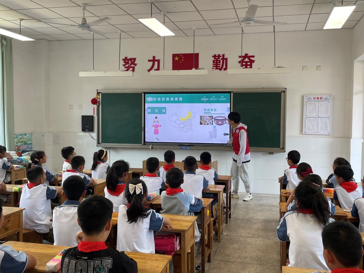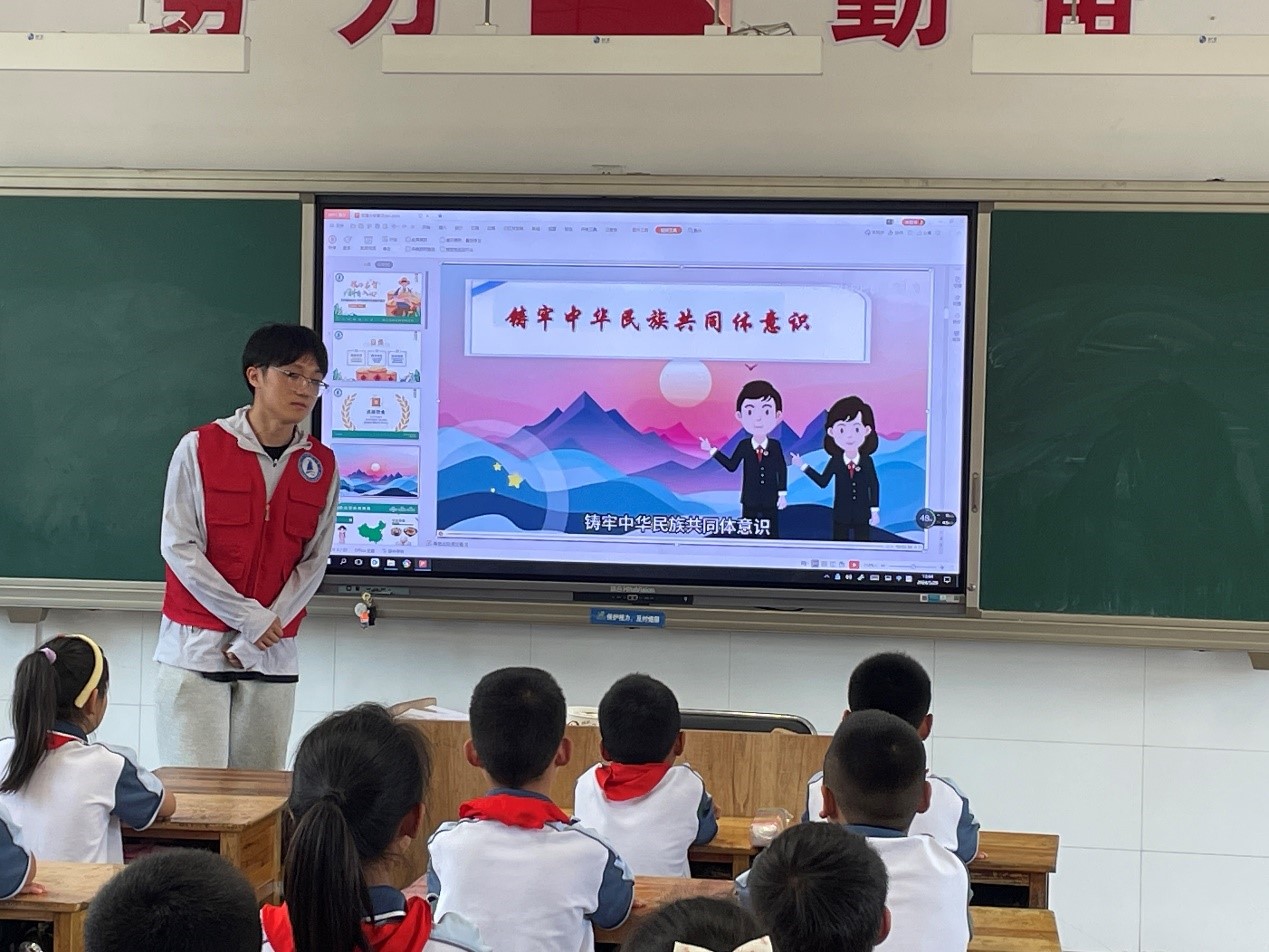 5月29日下午,竞彩足球app 部分师生来到镇江实验学校(官塘分校)四年级(1)班,为班里的小学生开展了一场生动的铸牢中华民族共同体意识宣传教育讲座。