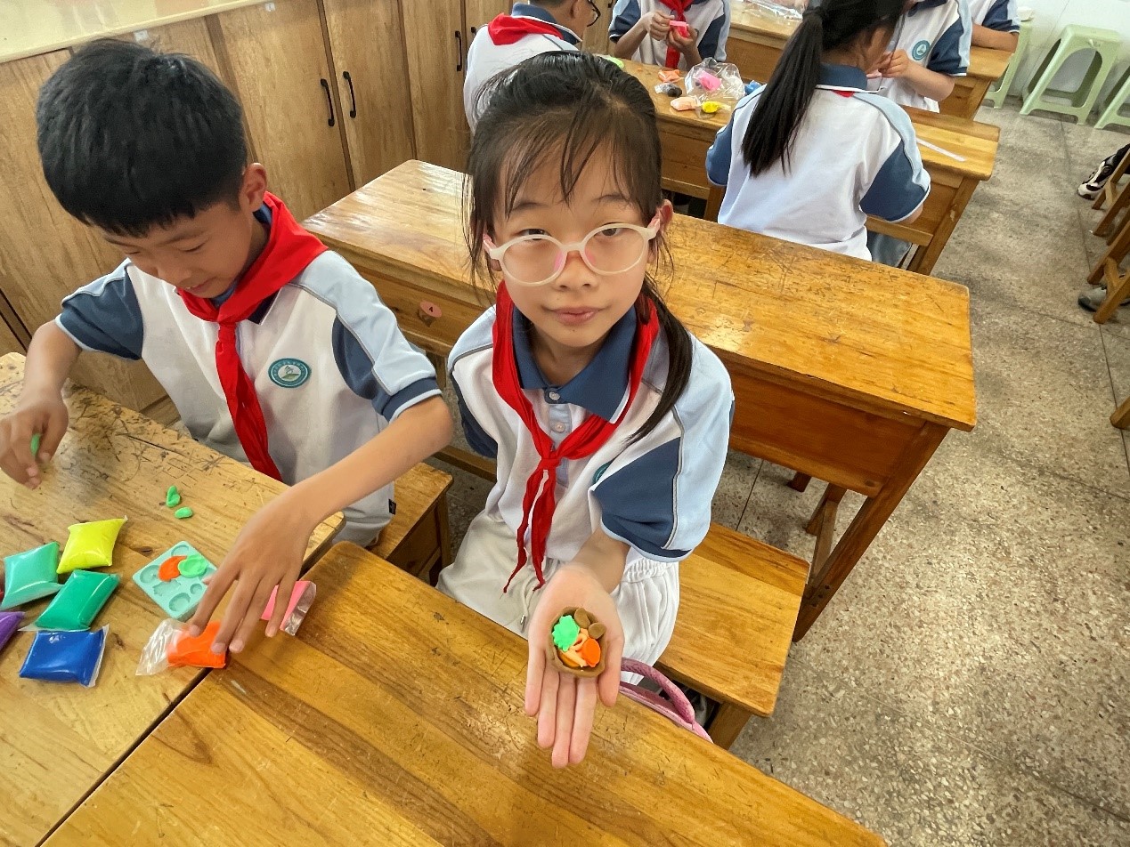 主讲人何阳同学以我们祖国多民族的地域代表性美食入题,介绍了我国源远流长的粮食文化、我国粮食安全现状。提出了节粮爱粮、反对浪费的倡议。讲座深深吸引了孩子们,他们在师生的指导下,以黏土为材料,用巧手捏出了一道道各民族的“美食”,以自己方式表达出对“56个民族一家亲”的感受。