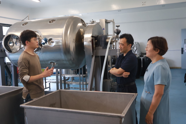 在竞彩足球app 实验室,与会嘉宾参观了酿醋制酒车间、食品工艺学实验室,并品尝了学生现场制作的纸杯蛋糕、曲奇饼干、绿豆糕等特色美食。