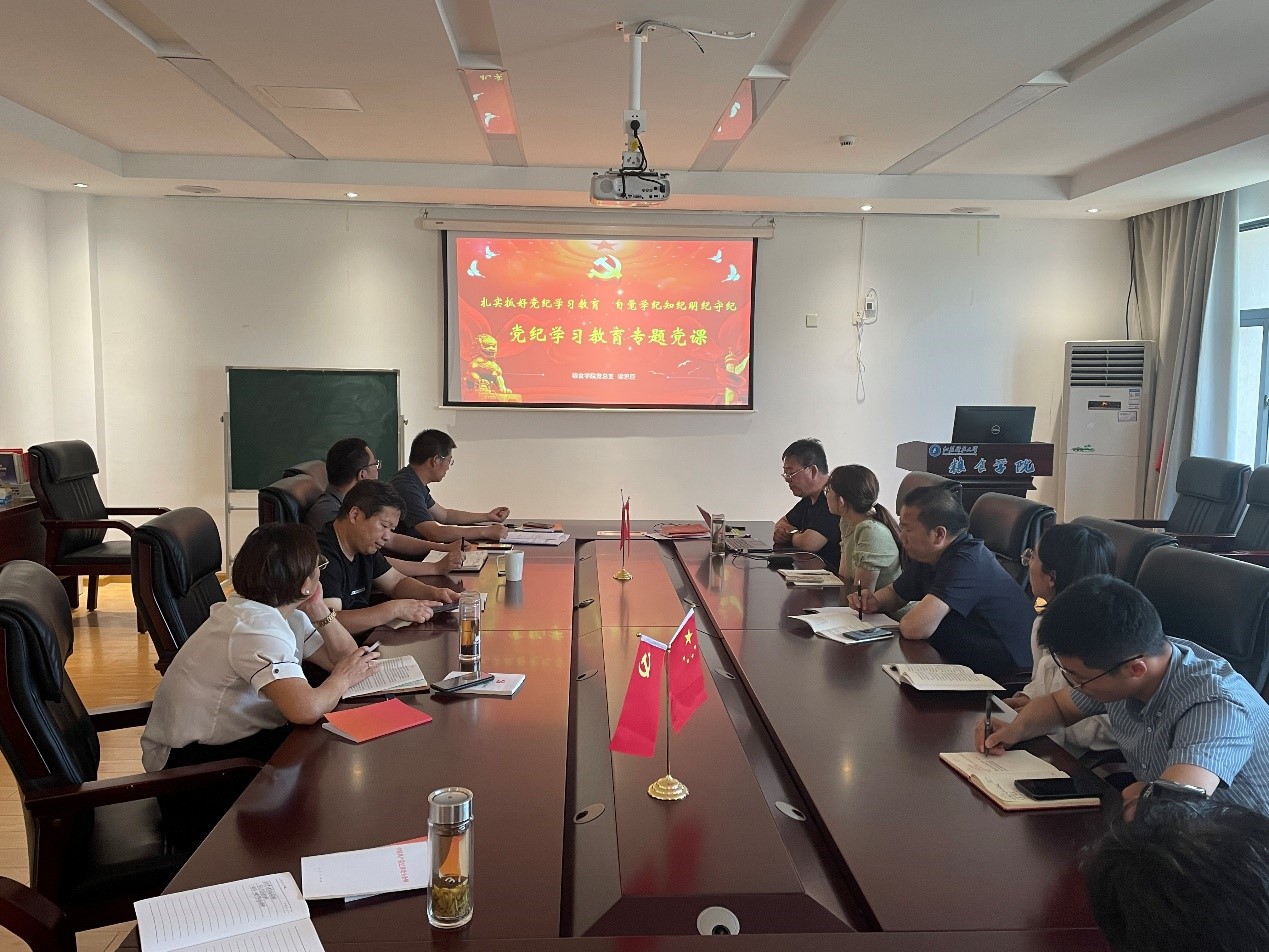 6月20日下午,竞彩足球app 党总支书记梁忠臣在学院436会议室为学院理论学习中心组全体成员讲“扎实抓好党纪学习教育 自觉学纪知纪明纪守纪”党纪学习教育专题党课。