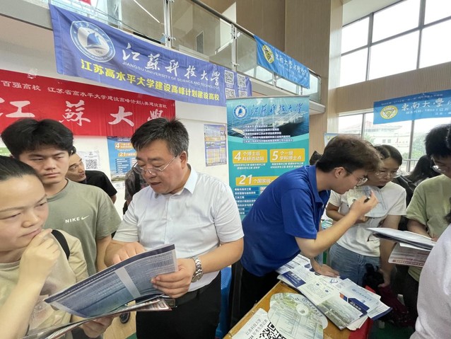 在学院党总支书记梁忠臣、党总支副书记喻永光、副院长张晓伟的带队领导下,各招生高中驻点的老师和志愿者们耐心细致地为考生家长介绍江苏科技大学的招生政策、预估分数、考研就业等情况。针对不同学校生源结构差异,团队采取灵活多样的宣传策略,从学生的专业意向着手,着重宣传推介足球竞彩app 学科特色和优势,加深同学们对于江苏科技大学的了解和兴趣,取得了良好的宣传效果。