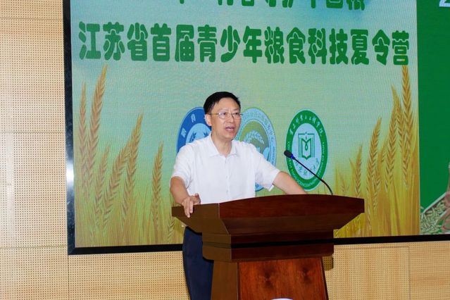 江苏省粮油学会秘书长李彦光代表业务指导单位发言。他从自身成长角度出发,阐述了60年代我国粮食紧缺时期的艰苦情况与当代粮食安全对国家的重要性。李秘书长总结道,“青春守护中国粮”是你们年轻人的责任,也是我们老一代粮食人的责任,归根结底还是需要青年人用于担当。希望广大同学通过此次夏令营,从识粮知粮、爱粮节粮的“关键小事”领悟“国之大者”,努力学习,筑牢粮安基石。
