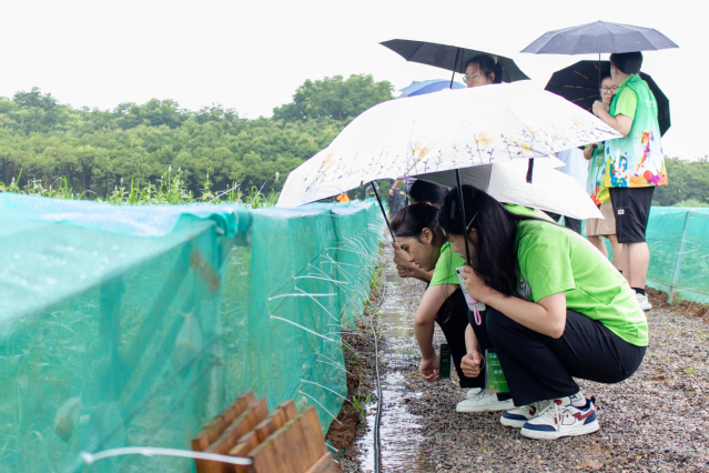 当日下午,营员们到达江苏省翰雅农场。在白玉蜗牛养殖基地,营员们在工作人员的指导下,仔细观察了白玉蜗牛的生活习性、养殖环境和养殖技术。通过与养殖户的交流,营员们对特色养殖产业在乡村振兴中的作用有了更深入的了解。随后,营员们体验了一日农家生活,亲身参与农事活动,在劳作中体会到农民的辛勤与粮食的来之不易。