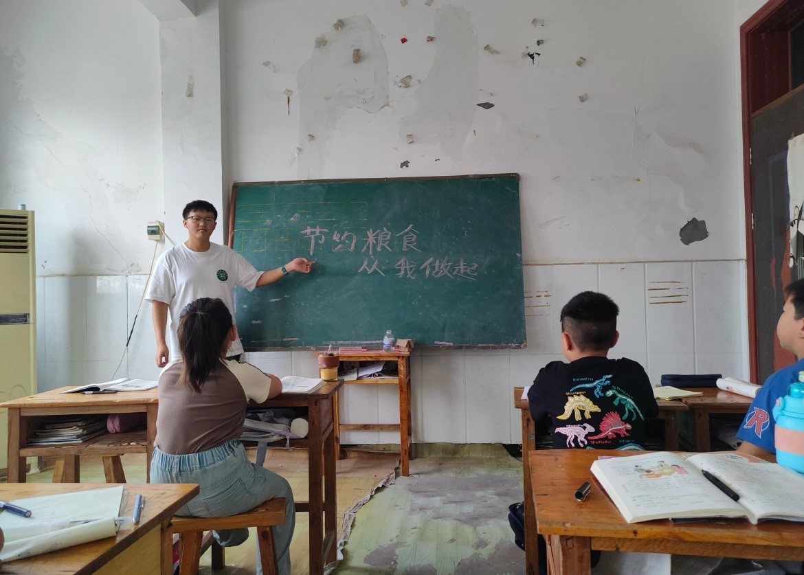 在山东省临沂市的中学,实践团成员通过PPT详细介绍了粮食的种类、营养成分以及种植过程中的难点,让学生们分组讨论如何在家和学校中践行节约粮食的行动。通过侧重于粮食安全与环境保护的结合,引导学生们思考如何在日常生活中做到可持续发展。