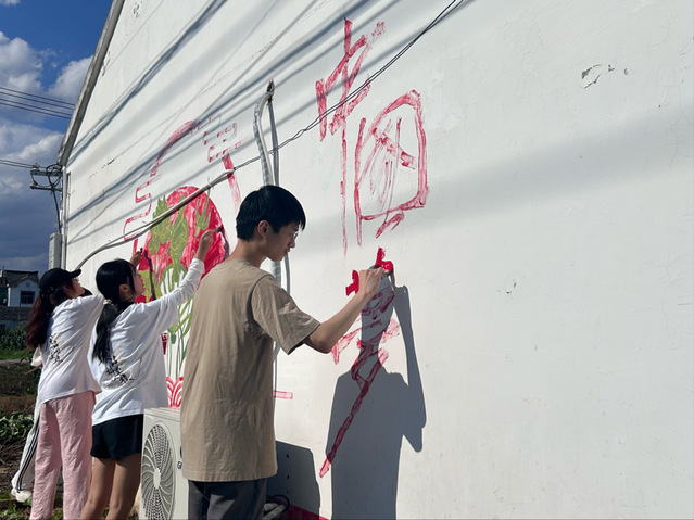 经过一下午的辛勤努力,崭新的文化墙如同一幅生动的画卷,展现在实践团成员的眼前。乡村文化墙,不仅展现了农村的历史文化和生活变化,也展现了大学生实践团队的激情和才华。