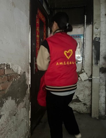 图为实践团石婕同学在帮忙打扫