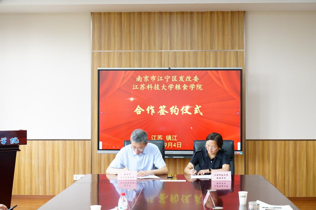 余小海、言明海副主任分别介绍了单位基本情况和此行的主要目的,结合江宁区粮食行业的发展以及近期建设规划,希望双方能在前期良好合作的基础上,进一步拓宽合作领域;以此次双方签订《合作框架协议》为契机,依托各自优势资源,努力打造人才培养、科研合作、社会服务的共享共赢平台。