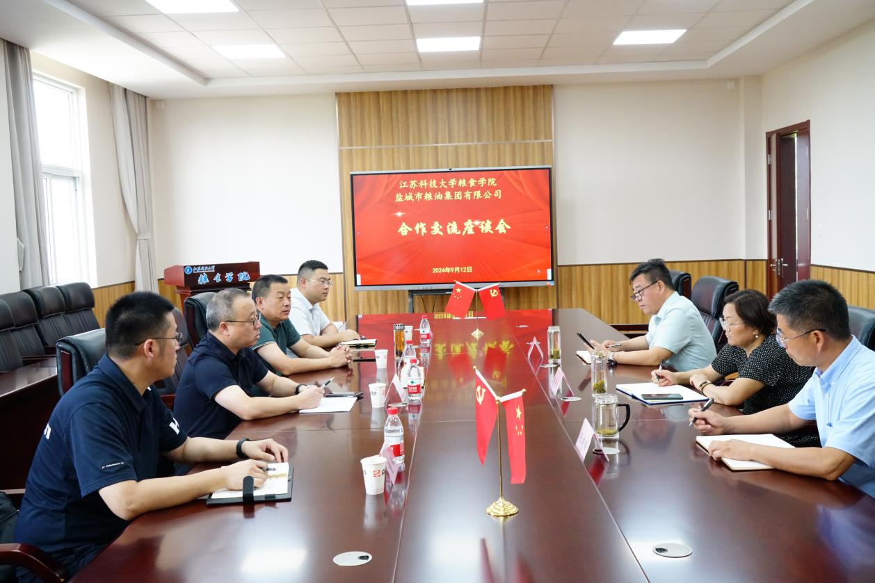 9月12日下午,盐城市粮油集团有限公司董事长陆春雷一行4人来足球竞彩app 开展合作交流。粮食学院党总支书记梁忠臣、院长鲁玉杰、副院长张晓伟等参加了合作交流座谈。