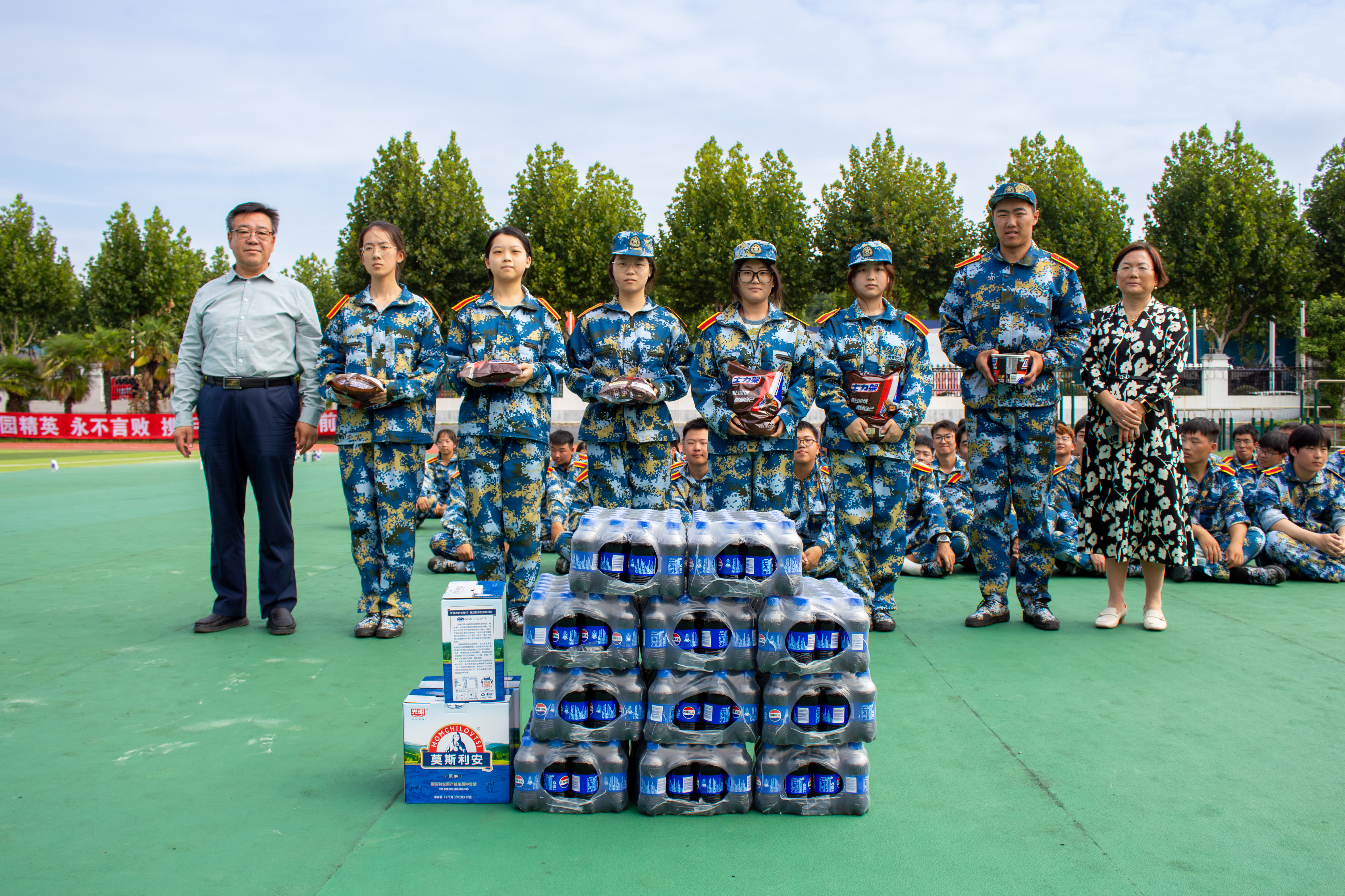 随后,老师们将准备好的慰问品一一分发给参训学子,老师们在分发慰问品时,亲切地与同学们交谈,询问他们的军训感受和生活情况,鼓励同学们要勇敢面对挑战,坚持到底,同时也要注意身体健康,合理安排休息。