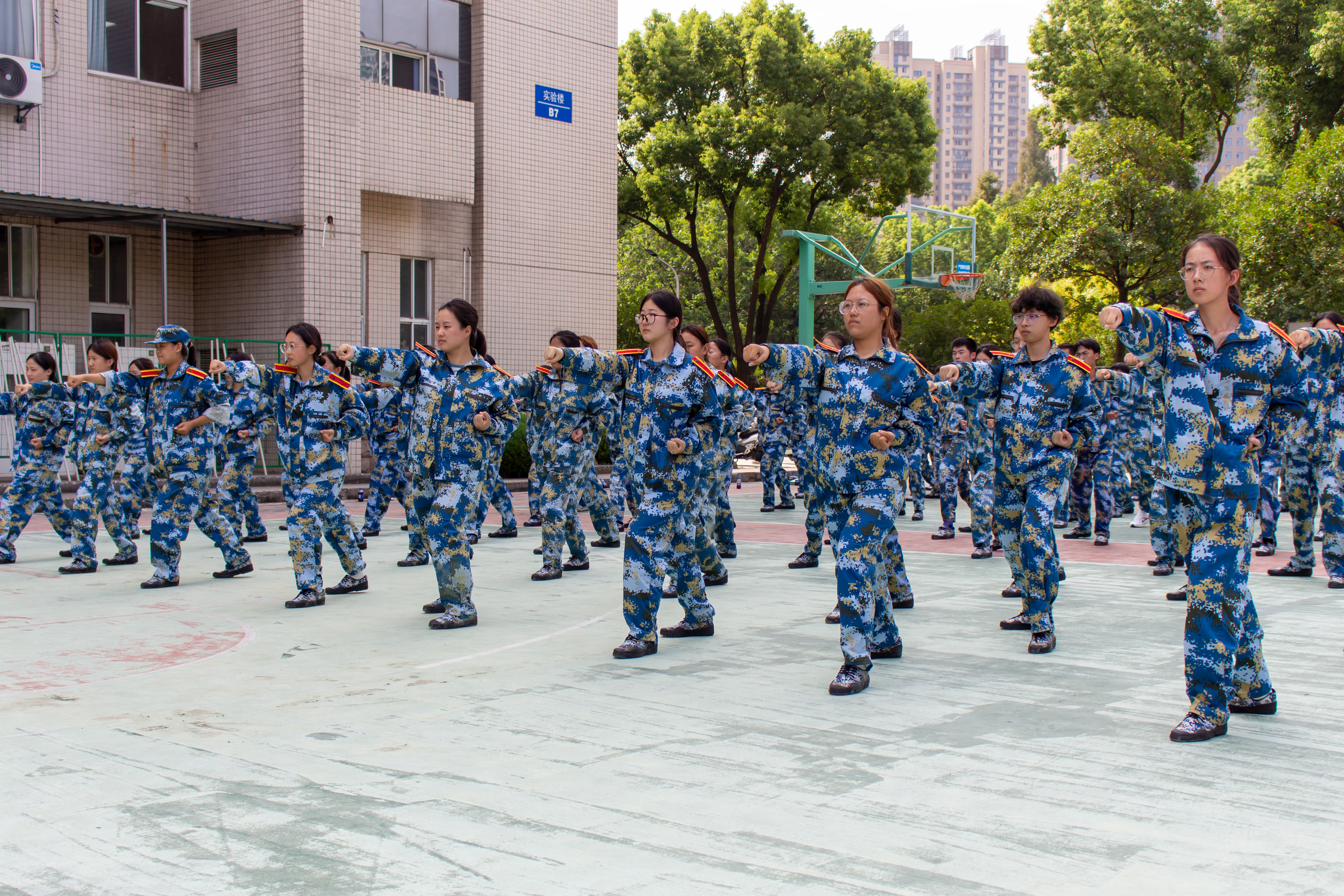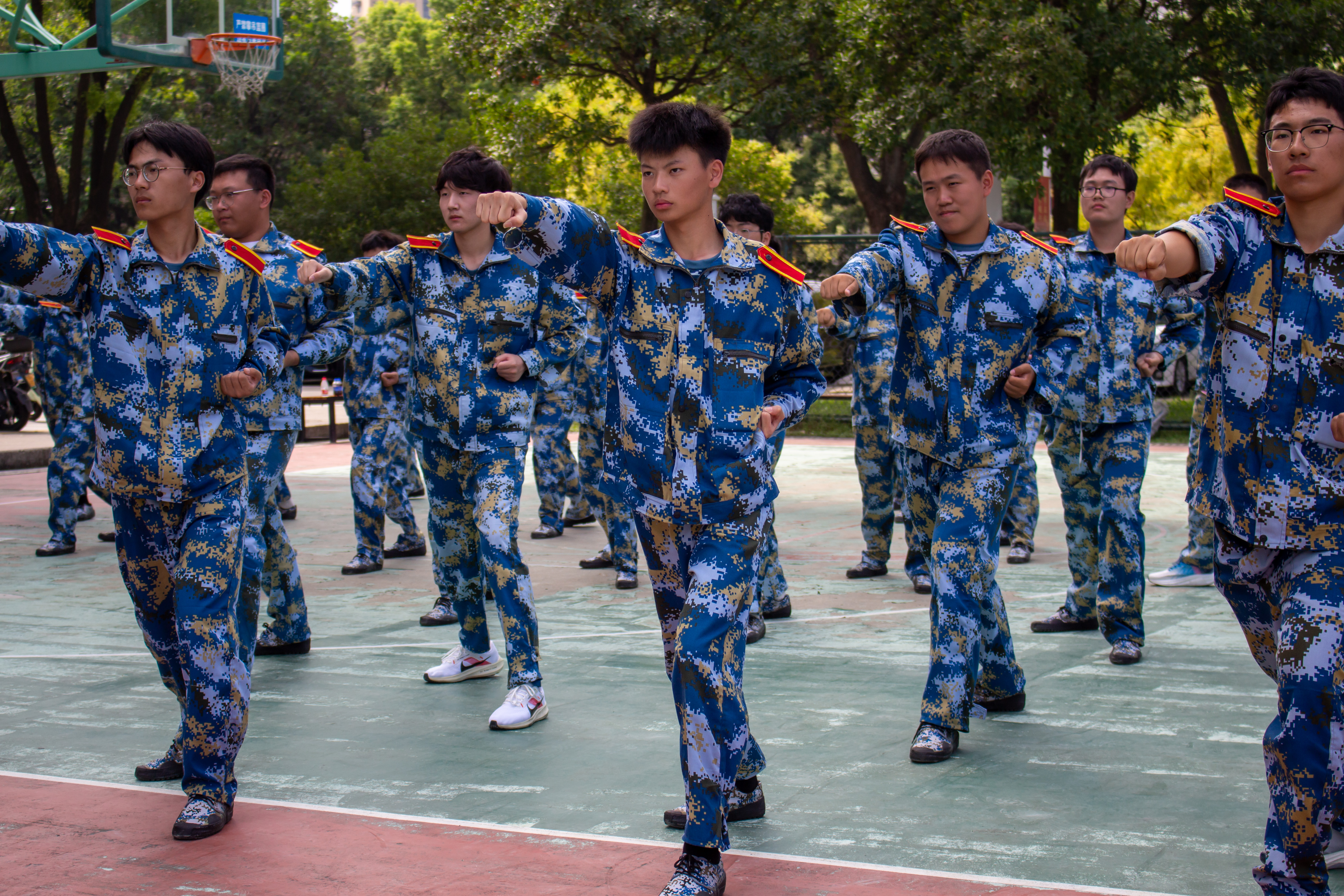 晨训风姿,比艳骄阳。晨光初照,朝阳同行。晨风清拂,脚步坚定。晨曦微露,意志如磐。晨练场上,同学们身影矫健,他们步伐整齐、口号响亮,每一个动作都透露出军训期间刻苦训练的成果。