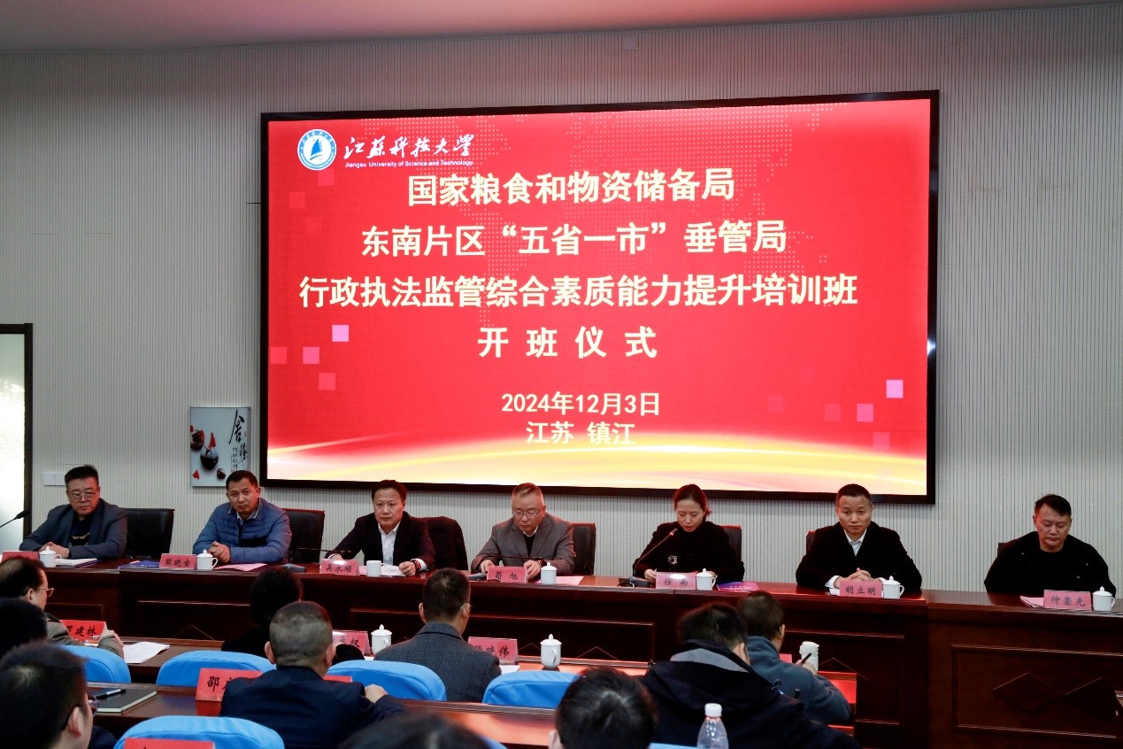 12月3日上午,国家粮食和物资储备局东南片区“五省一市”垂管局行政执法监管素质能力提升培训班在足球竞彩app 梦溪校区顺利开班。国家粮食和物资储备局浙江局分党组书记、局长荀旭,安徽局分党组书记、局长胡立明,江苏局分党组书记、局长吴永顺,上海局分党组副书记、纪检组长、二级巡视员熊晓宝,浙江局分党组成员、副局长穆良权,江苏科技大学党委常委、副校长任南,继续教育学院院长仲崇光,竞彩足球app 副院长张晓伟出席了开班仪式。开班仪式由竞彩足球app 党总支书记梁忠臣主持。