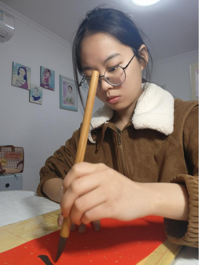 手执毛笔,写下的是祝福,弘扬的是文化。实践团成员,不仅在社区卫生建设方面作出贡献,同时还在社区文化宣传中发光发热。路欣瑜参加社区迎春送祝福活动,负责春联书写、运送的工作。活动当天,她跟随主办方一起到达活动现场,并与其他工作人员一起对场地进行布置,为书法老师们准备好笔墨纸砚。活动开始后,她随时待命,哪里需要帮忙就及时行动,在书写大字版春联时,帮助拉动春联纸,在书写单字福时,及时将写好的福字放到指定地点晾干。在活动结束后,将活动用具整理收拾,并将活动场地恢复如初。活动团成员王梓童认真书写新春祝福,并将写好的春联送给社区的居户,他将自己的专业与书法结合写下了“四时安泰人间乐,五谷丰登天下平”的对联,她说:“身为一个粮食人,无论是在写下‘五谷丰登天下平’时,还是将对联送给社区里的邻居,并且向他们普及粮食安全的重要性并且得到肯定时,心中的成就感与自豪感都会油然而生,在弘扬传统文化、为社区添温情的同时树立专业自信心,这就是实践活动让我收获最大的一点。”